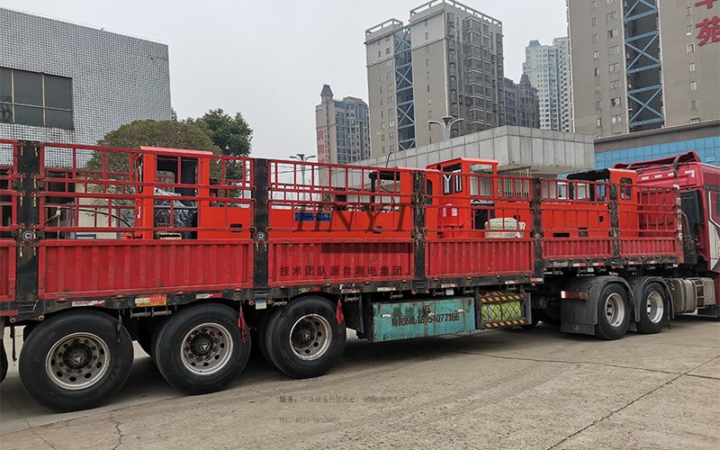 4套雙駕駛室8噸蓄電池湘潭電機(jī)車,由兩輛大卡車直接送往礦山。
