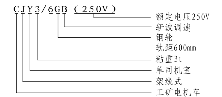 一、架線式礦用電機(jī)車產(chǎn)品型號、含義及載貨力介紹(CJY3/6GB型架線式工礦電機(jī)車